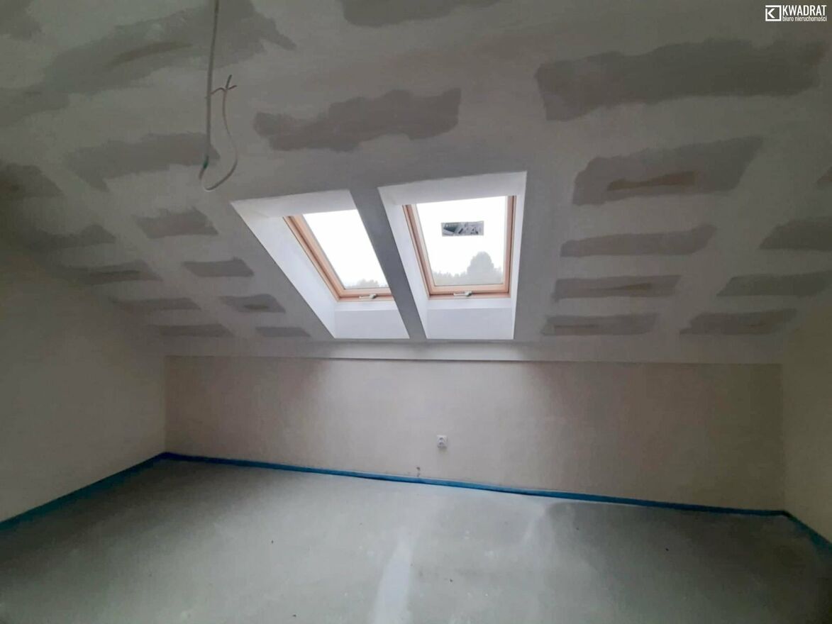 strych w całości wykończony płytami pilśniowymi.