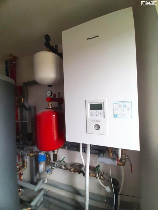- ogrzewanie: pompa ciepła z zasobnikiem c.w.u.