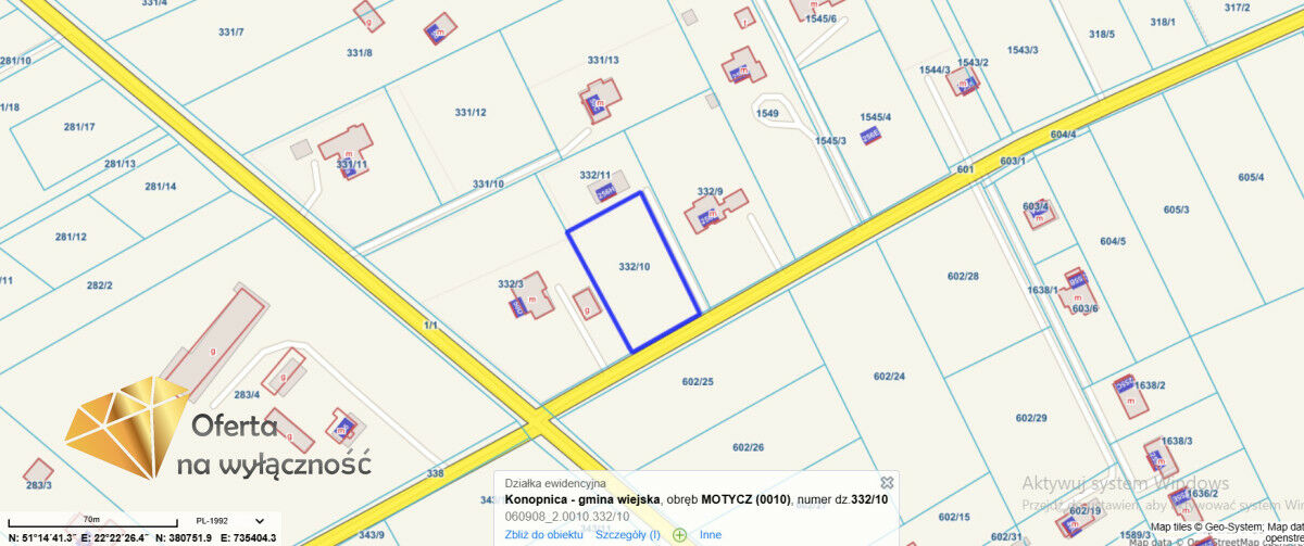 Działka budowlana Motycz gm. Konopnica,